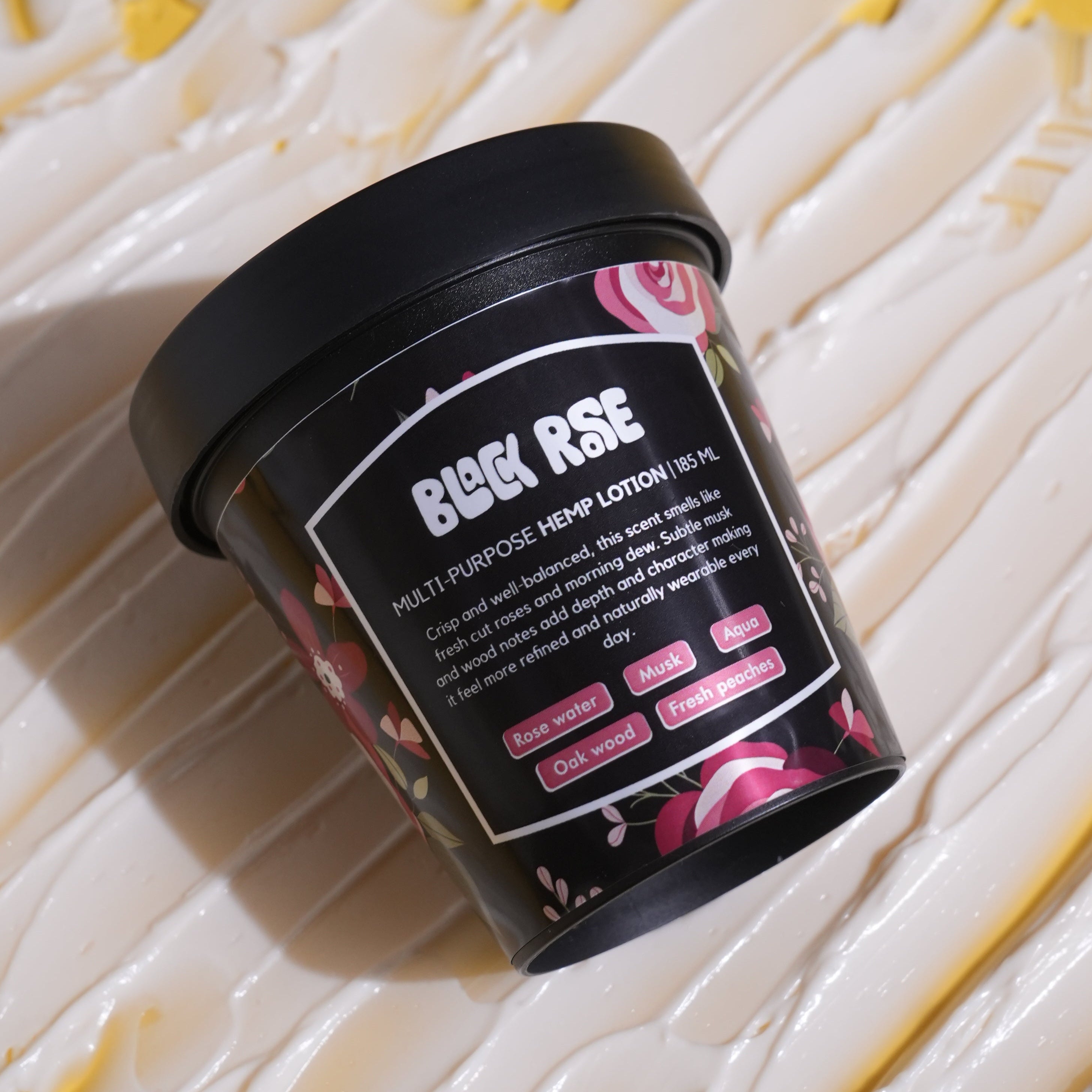 Ingredients: Distilled Water, Glycerine, Cocoa Butter, Licorice Root Extract, Almond Oil, Aloe Vera Extract, Jojoba Oil, BTMS-50, Fragrance, Hemp Seed Oil, Emulsifying Wax, D-Panthenol (Provitamin B-12), Stearic Acid, Optiphen Plus, Dimethicone, Kojic Acid, Allantoin